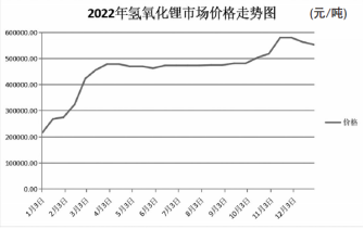 Isbeddelka suuqa lithium hydroxide sanadka 2022 waxaa loo qaybin karaa saddex marxaladood. Horraantii 2022, suuqa lithium hydroxide wuxuu suuqa ku furay celcelis ahaan qiimo dhan 216,700 yuan (qiimaha tan, isla kan hoose). Ka dib kor u kaca xooggan ee rubuci hore, wuxuu sii waday heer sare rubuci labaad iyo saddexaad. Celceliska qiimaha 10,000 yuan ayaa dhammaaday, sanadkuna wuxuu kordhay 155.38%